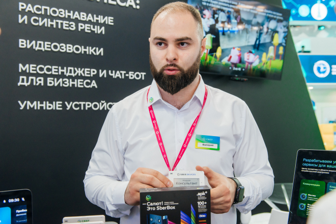 Компания-партнер SberDevices продемонстрирует на стенде технологические сервисы для бизнеса, созданные на основе искусственного интеллекта речевых технологий, нейросетей, генеративных моделей и машинного обучения. Все гости смогут подробнее узнать о платформе синтеза и распознавания речи SaluteSpeech, сервисе видеоконференций SberJazz и платформе для автоматизации цифровых каналов взаимодействия с клиентом SaluteBot.