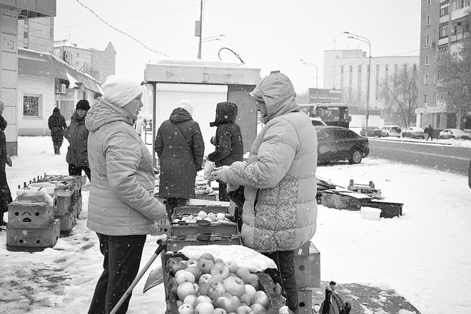 С наступлением тепла Лариса и ее напарница начнут торговать фруктами. Напоследок я спрашиваю женщин, как будет выглядеть уличная торговля через сто лет. Они говорят: да так же.