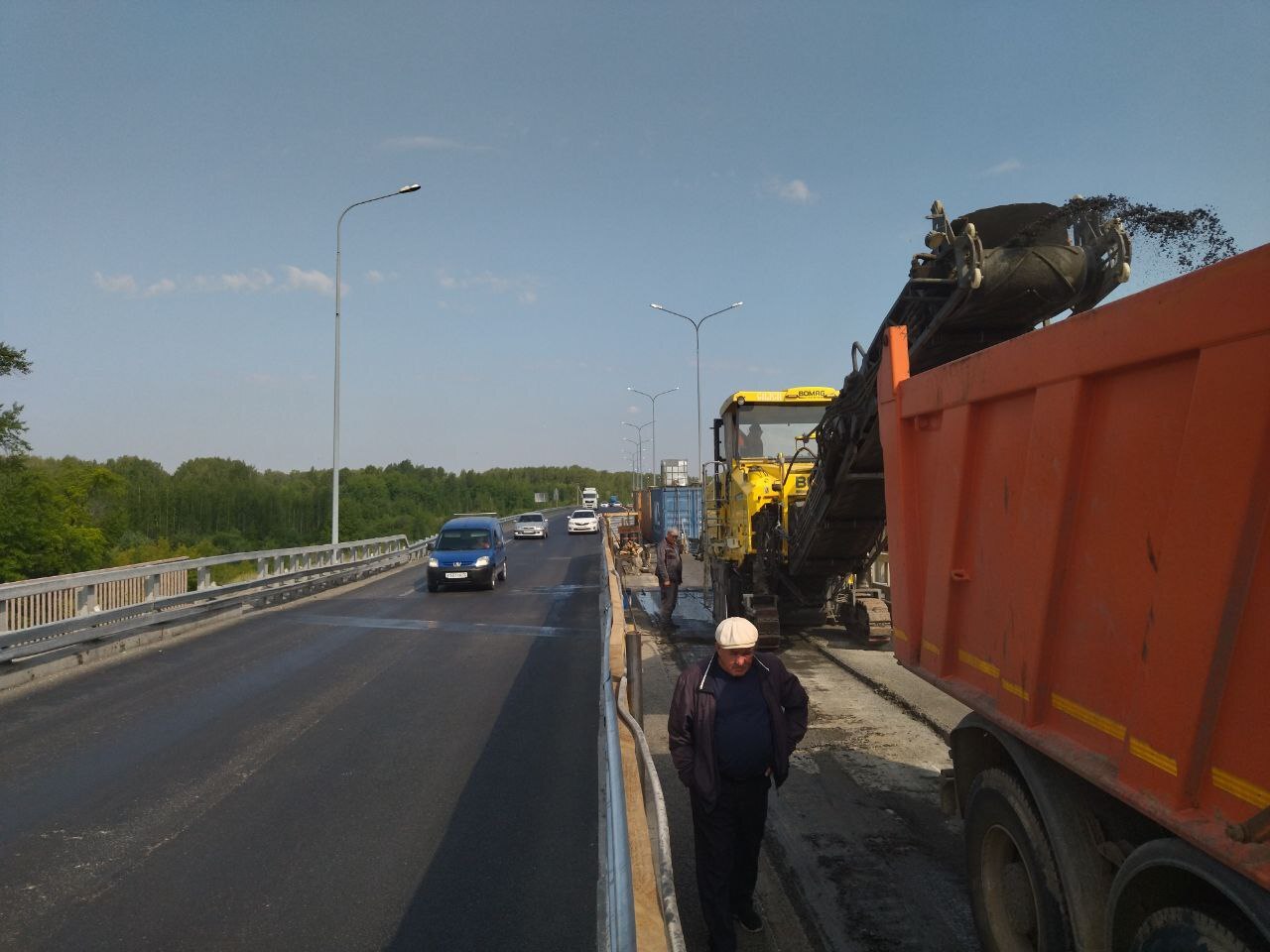 В пятницу утром подрядная организация приступила к демонтажу верхних слоёв асфальтобетона. Перед этим были проведены подготовительные работы: выставлено ограждение, демонтированы металлические деформационные швы. После снятия асфальта специалисты разрежут армированный защитный слой и снимут старую гидроизоляцию. Далее приступят к восстановлению выравнивающего слоя пролётного строения путепровода и водоотводных трубок, укладке новой гидроизоляции и слоёв асфальта.