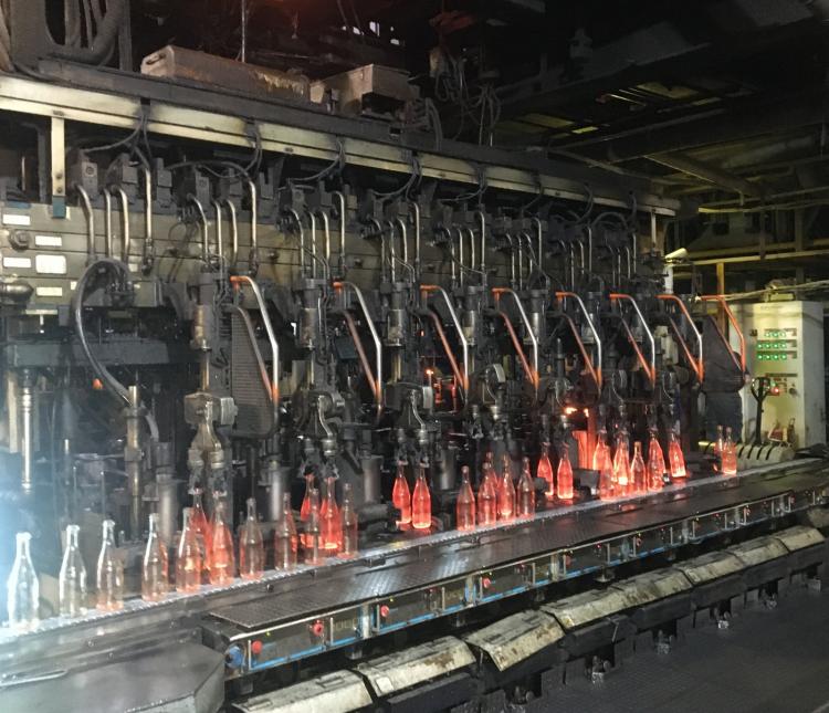 Чтобы получить 100 кг стекла, необходимо 117 кг сырья. Для получения стеклянной продукции с определенными заданными характеристиками необходимо четко и тщательно контролировать состав и пропорции элементов, которые входят в специальную смесь. Эта смесь направляется в печь, где происходит ее нагрев до температуры плавления и получается жидкая стеклянная масса. Чтобы придать стекломассе форму бутылки, она нарезается на капли, которые поступают в стеклоформующую машину, где при помощи сжатого воздуха и вакуума идет процесс формования капли в бутылку. Далее бутылку обжигают, что бы она стала прочной и устойчивой к температурным перепадам. Чтобы стеклянная тара в процессе упаковки и транспортировки не сломалась, ее обрабатывают особым раствором химических веществ. В заключение бутылки проходят контроль качества. На предприятии создан банк образцов, где собраны бутылки со всеми видами дефектов: инородные, газообразные включения, отклонение горлышка от вертикали, вмятины, посечки по резьбе, под резьбой, под венчиком, по горлышку, по дну, различные трещины и другое. Образцы прогоняют через инспекционные машины, чтобы выявлять бракованную продукцию. Стеклотара, которая его не прошла, отбраковывается и направляется на вторичную переплавку.