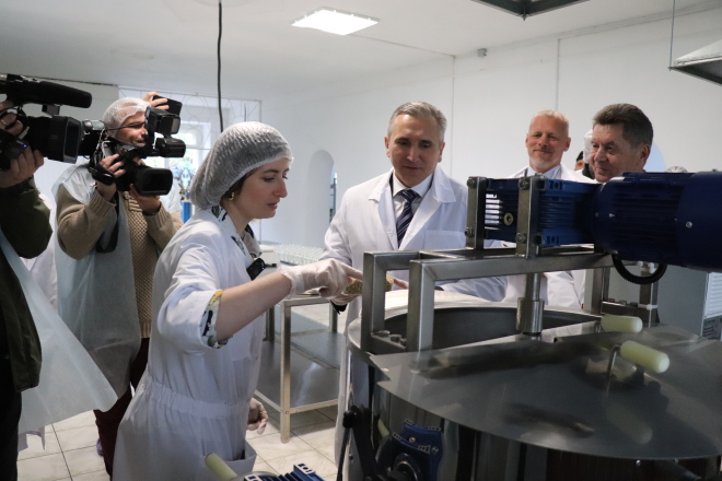 Далее путь главы региона лежал в сёла муниципалитета. В Горюново А. Моор побывал у индивидуального предпринимателя Татьяны Ильиной. Большой интерес губернатора вызвал её инвестиционный проект по переработке дикоросов, овощей и фруктов. Он попробовал деликатесы, выпускаемые под маркой «Жили-были». Особенно понравилось Александру Викторовичу варенье из тыквы – из неё часто готовила разнообразные блюда бабушка губернатора.