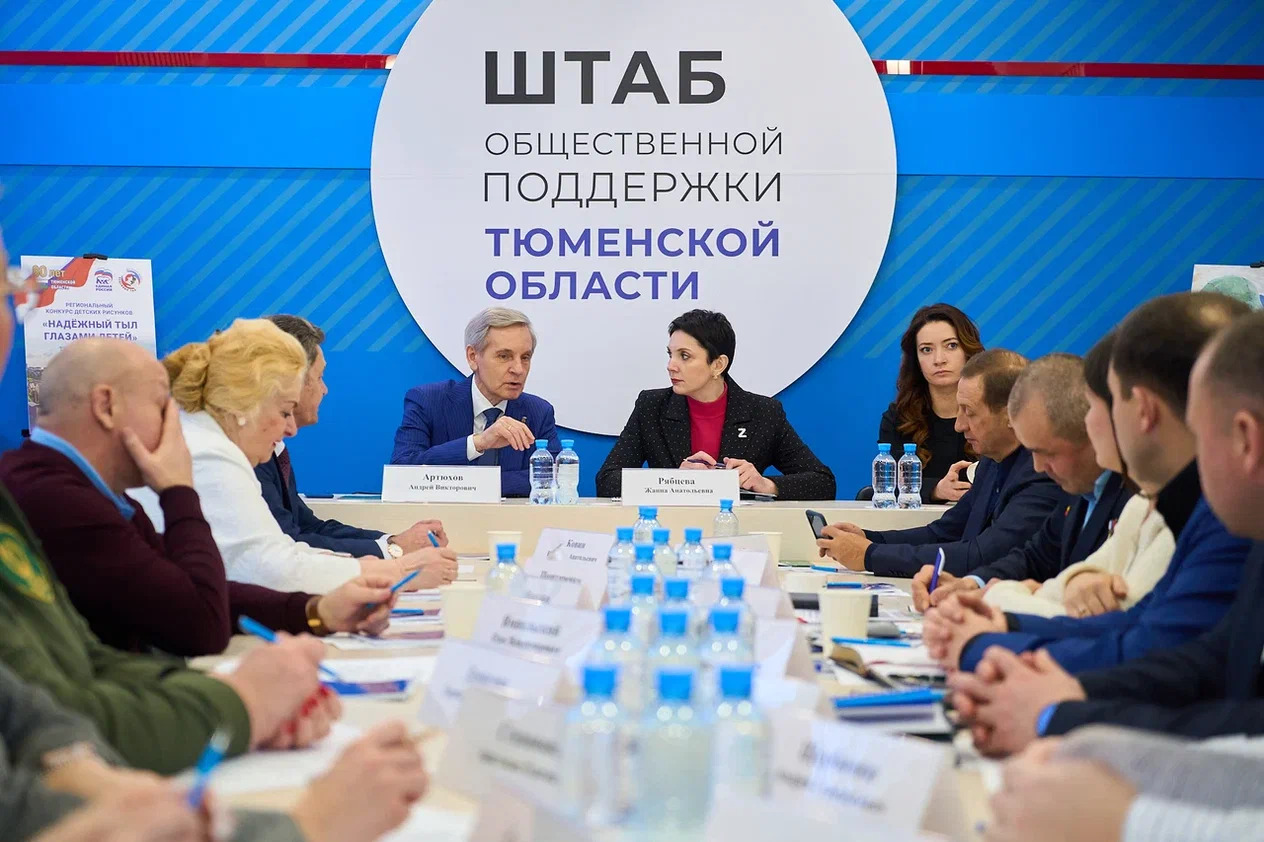 В Штабе общественной поддержки Тюменской области состоялась встреча Жанны Рябцевой с членами фракции “Единой России” Тюменской облдумы, представителями общественных организаций, оказывающих гуманитарную помощь воинам в зоне СВО. В ней приняли участие первый заместитель председателя Тюменской облдумы, секретарь Тюменского регионального отделения “Единой России” Андрей Артюхов, руководитель регионального исполкома партии, председатель комитет по соцполитике Ольга Швецова, председатель комитета по аграрным вопросам и земельным отношениям Владимир Ковин, спецпредставитель губернатора по вопросам СВО, депутат облдумы Николай Савченко, руководитель Тюменского филиала фонда “Защитники России” Динара Поштаренко и другие.