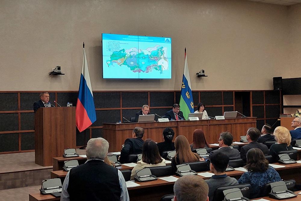 Заседание продолжилось докладом на тему «Тюменская геология и государство», который представил генеральный директор научно-технического центра ООО «МНП «Геодата», доктор геолого - минералогических наук Брехунцов Анатолий Михайлович.