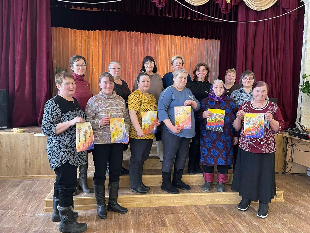 Начальник отдела социальной защиты населения Оксана Дьяконова рассказала о мерах социальной поддержки мобилизованных граждан. Психолог центра Ирина Ларионова поделилась техникой снятия стресса. Участники встречи проявили свои творческие способности в мастер-классе по рисованию картин. Мероприятие завершилось чаепитием.
