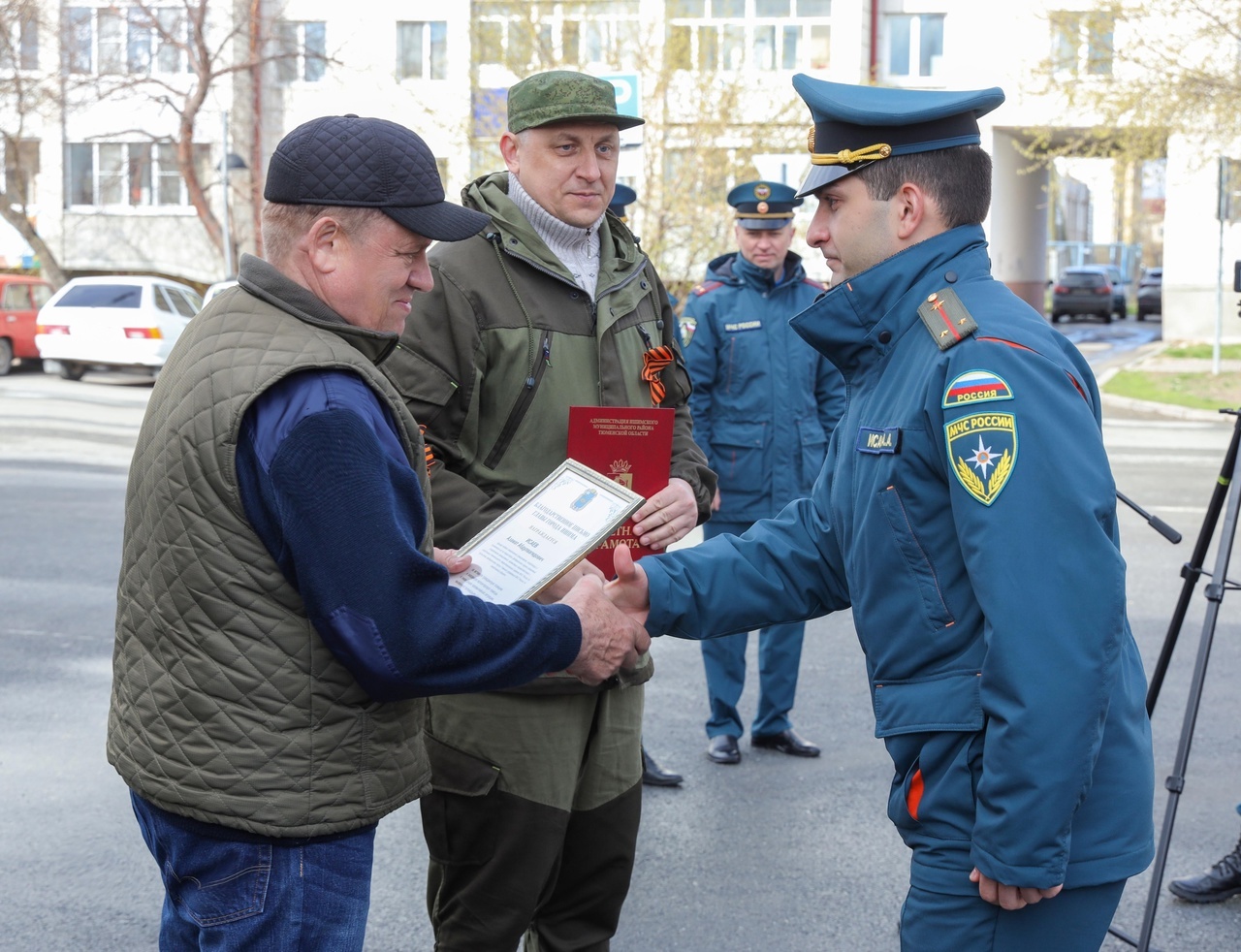 Перед отбытием сотрудников ГУ МЧС России по Свердловской области от имени жителей города их поблагодарили главы Ишима и Ишимского района Федор Шишкин и Сергей Ломовцев, руководители муниципалитетов вручили спасателям заслуженные награды.