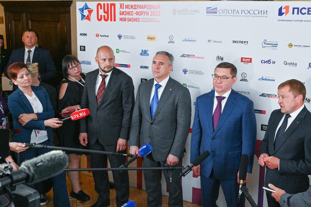 Почетными гостями форума стали полномочный представитель президента России в Уральском федеральном округе Владимир Якушев, губернатор Тюменской области Александр Моор и президент общероссийской общественной организации малого и среднего предпринимательства «Опора России» Александр Калинин.