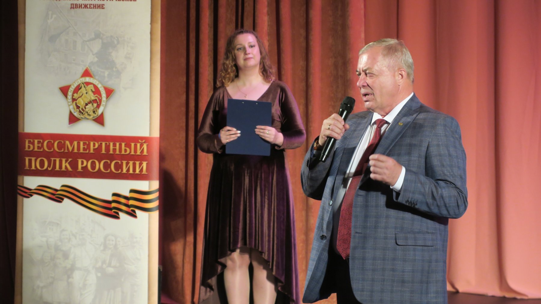 Полковник в отставке, участник боевых действий в Афганистане, кавалер Ордена Мужества Сергей Захаров также приветствовал зал и напомнил о важности связи поколений для того, чтобы нить памяти не оборвалась. Особенно важно это, отметил он, в наши дни, когда идёт специальная военная операция.