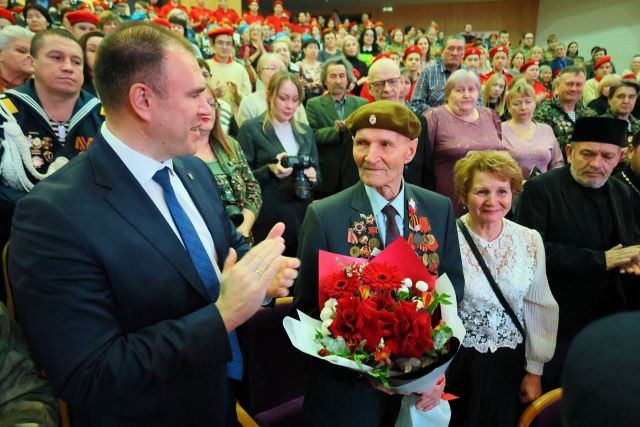 Старт Году защитника Отечества, героев России в Тюменской области, 80-летия Победы в Великой Отечественной войне, мира и единства в борьбе с нацизмом, в Тобольске был дан на главной городской сцене – в ДК «Синтез». С приветственным словом к тоболякам на сцену поднялись глава города Петр Вагин и председатель городской думы Андрей Ходосевич.