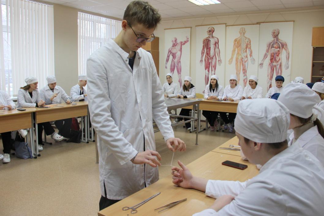 Школьники отвечали на вопросы о хирургических инструментах, швах и шовном материале, а также демонстрировали навыки вязания хирургических узлов.