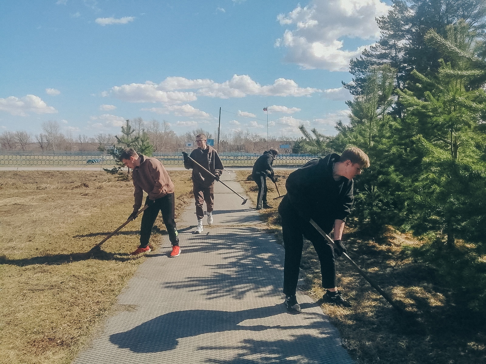 Дружно собрали прошлогоднюю листву и сухую траву, очистили территорию от веток и прочего мусора, накопившегося за зиму.