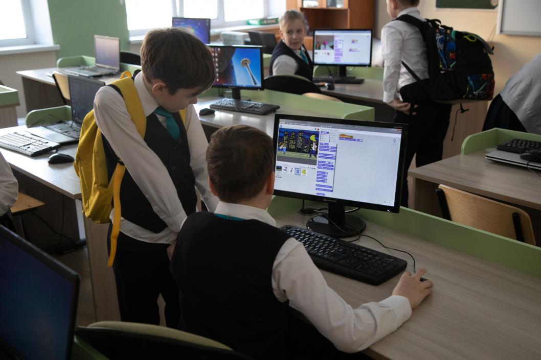 Первоклассники из Ембаевской школы будут заниматься в новом компьютерном классе, который открылся в сентябре текущего года.
