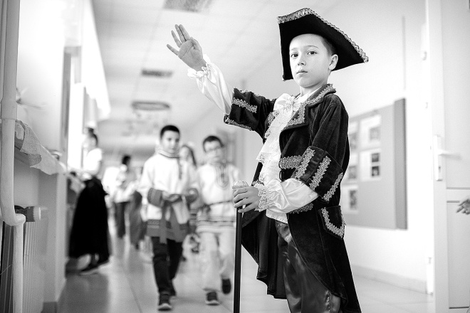 НА СНИМКЕ: Дмитрий Шестаков из 2 «А» в роли Петра I.