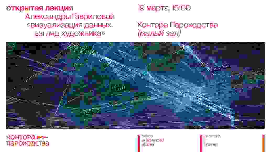 19 марта приглашенный профессор Школы перспективных исследований (SAS) Александра Гаврилова проведет открытую лекцию «Визуализация данных. Взгляд художника» .