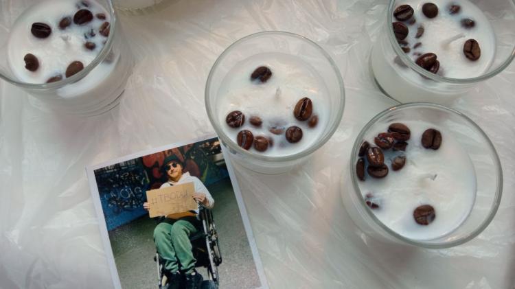 На "Солянка маркете" мастер с ограниченными возможностями здоровья представил композицию в виде ладоней из бетона, которую можно использовать как чашу, свечи из кокосового воска с кофейными зернами, светильник с бетонным основанием. Также в наличии детские творческие наборы, в состав которых входят краски и фигурки из гипса, отлитые Андреем Бетехтиным. Их у мастера уже закупали в детские сады для проведения утренников.