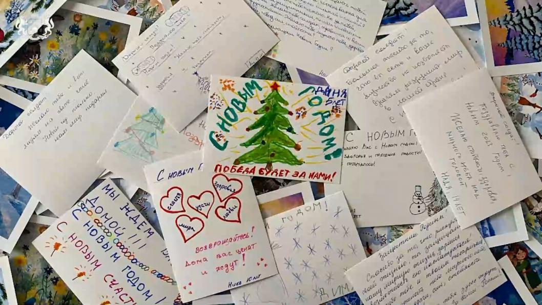 Открытки с теплыми словами и пожелания для защитников Отечества, подготовленные тюменскими ребятишками для наших бойцов, передали адресатам.