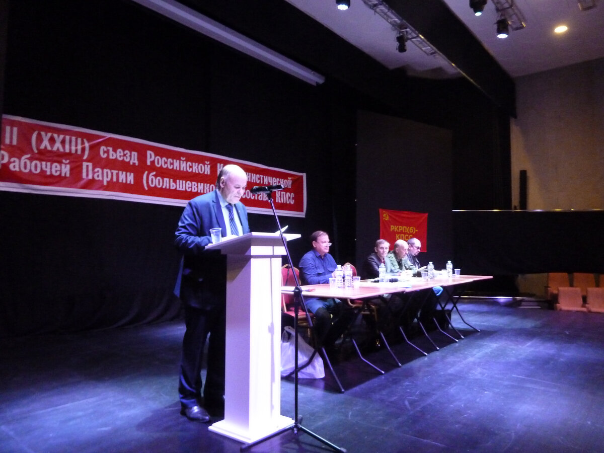 И вот прошло два года. Срок немалый для того, чтобы понять насколько жизнеспособной оказалась партия, и насколько эффективной была её деятельность за весь этот период. Вместе с тем перед коммунистами РКРП(б)-КПСС стоит задача формирования стратегии на будущее, определение ближайших целей. Все эти вопросы обсуждались на съезде партии, который прошёл 8 и 9 апреля 2023 г. в Горках Ленинских. На съезд было избрано 35 делегатов, присутствовало 34, в том числе 18 рабочих. Они представляли коммунистов 19 субъектов Федерации. Полномочия всех за отчётный период были признаны легитимными и все получили мандаты. Кроме того, на съезде присутствовали гости из трёх групп КПСС, движения Советских граждан, которые также принимали активное участие в работе съезда. Присутствовал гость из Китая. А свои приветствия съезду прислали компартии Киргизии, Приднестровья и Молдавии.