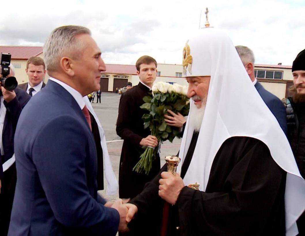 Предстоятеля Русской Православной церкви в аэропорту "Рощино" встретили губернатор Тюменской области Александр Моор, а также полпред президента в Уральском федеральном округе Владимир Якушев.