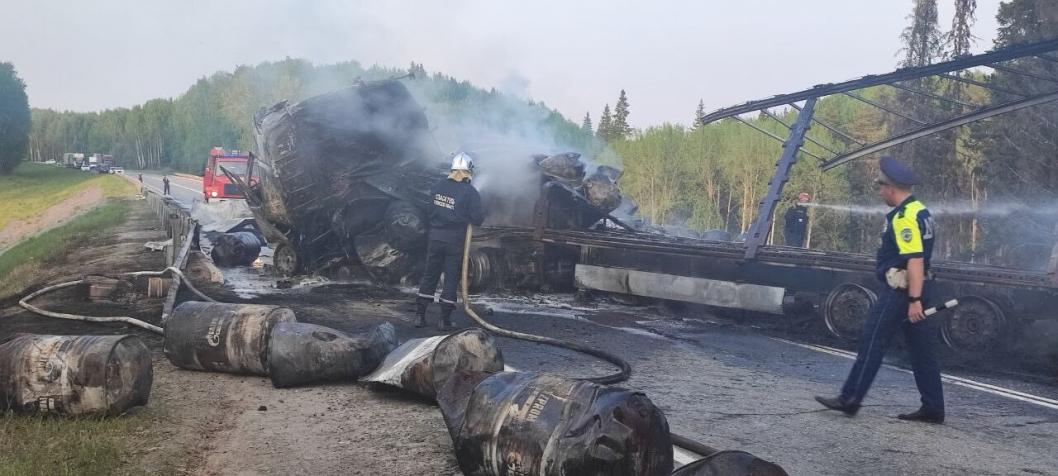 На месте аварии большегрузов в Тобольском районе запустили реверсивное движение