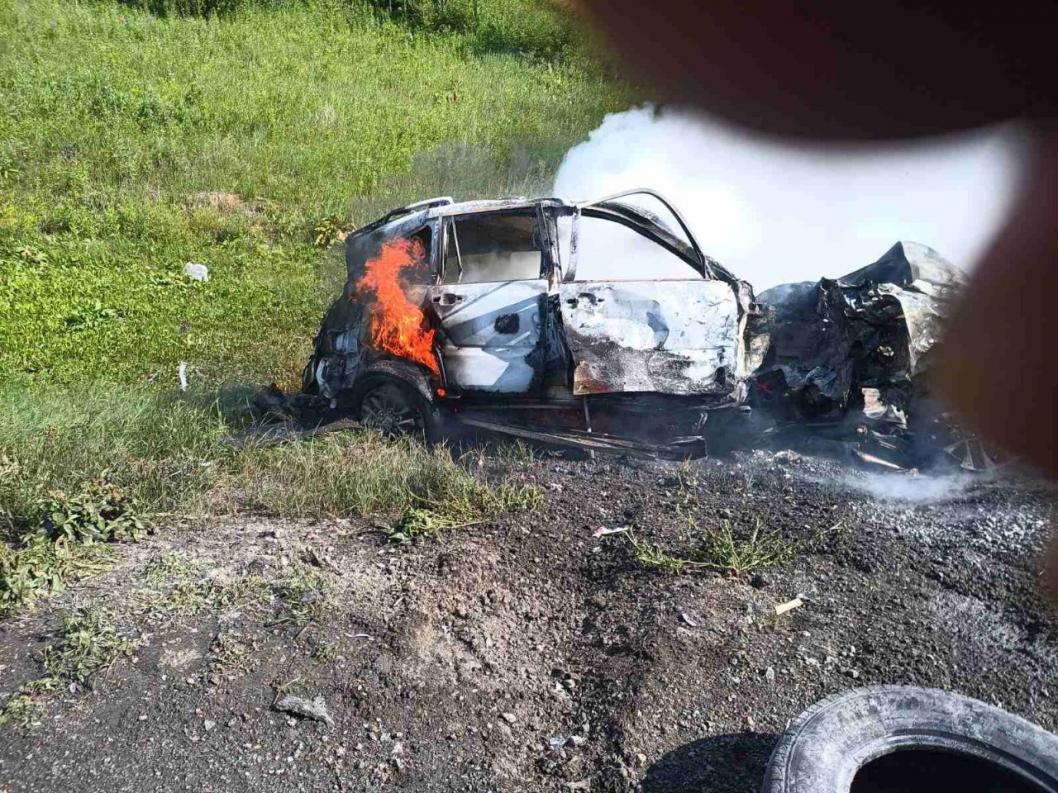 На тюменской трассе после столкновения с фурой сгорел Volkswagen Touareg
