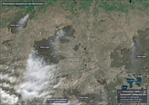 Пожары в Тюменской области видны из космоса