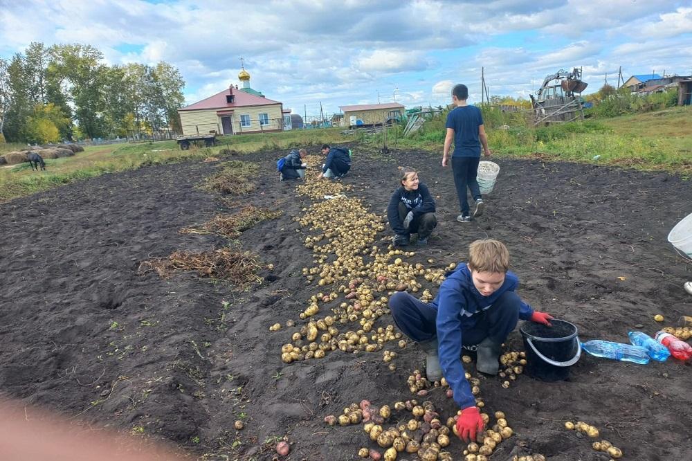 Тимуровцы из Бигилинской школы помогают пожилым людям в уборке урожая