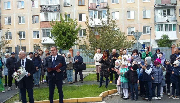 Сегодня в начальной школе-саду № 76 в Тюмени прошла торжественная линейка. На ней депутат городской Думы Андрей Ким наградил почётными грамотами сотрудников в связи с 60-летней годовщиной школы.