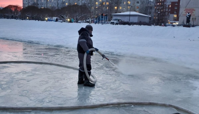 В этом году из-за погодных условий заливать каток начали только в середине января. Работы планируется закончить до 20-го числа текущего месяца.