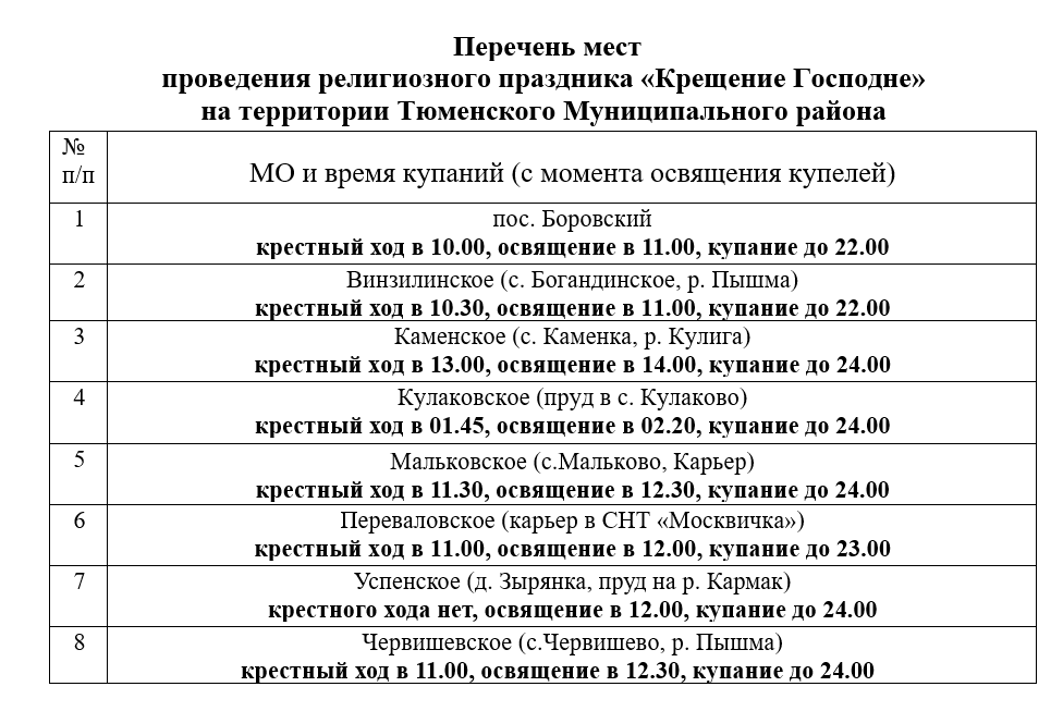 Накануне в администрации района прошло совещание с участием глав МО, на территории которых обустраивают места для купания верующих, руководителей Областной больницы №19, МО МВД «Тюменский», МЧС.