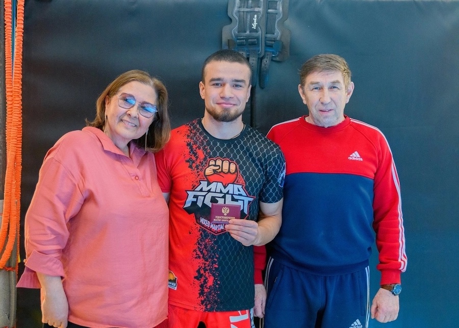 Директор департамента спорта и молодежной политики администрации Тобольска Ольга Алеева вручила Равилю удостоверение и знак «Мастер спорта России».
