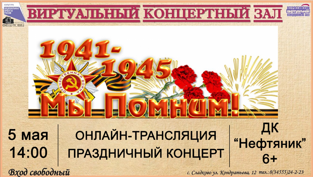 Праздничный концерт ко Дню Победы «Мы помним» из Дворца культуры «Нефтяник» жители Сладковского района смогут посетить, не покидая территории нашего муниципалитета.