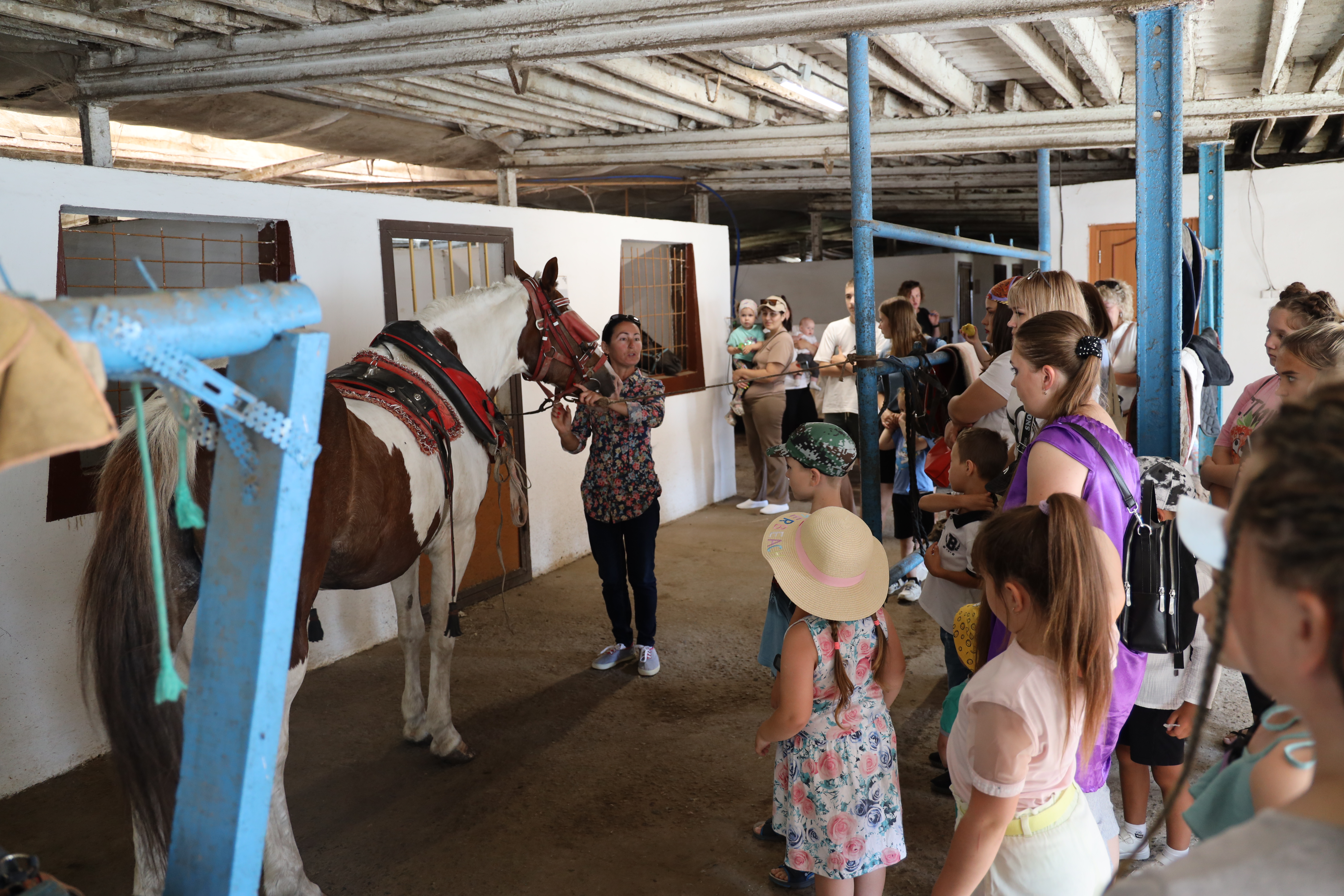 Управляющая конным клубом Наталья Арапова прокатила всех желающих на повозке, а затем провела для гостей экскурсию по конюшне. Она рассказала о жизни животных и правилах их содержания, а также поделилась интересными историями о редких породах лошадей.