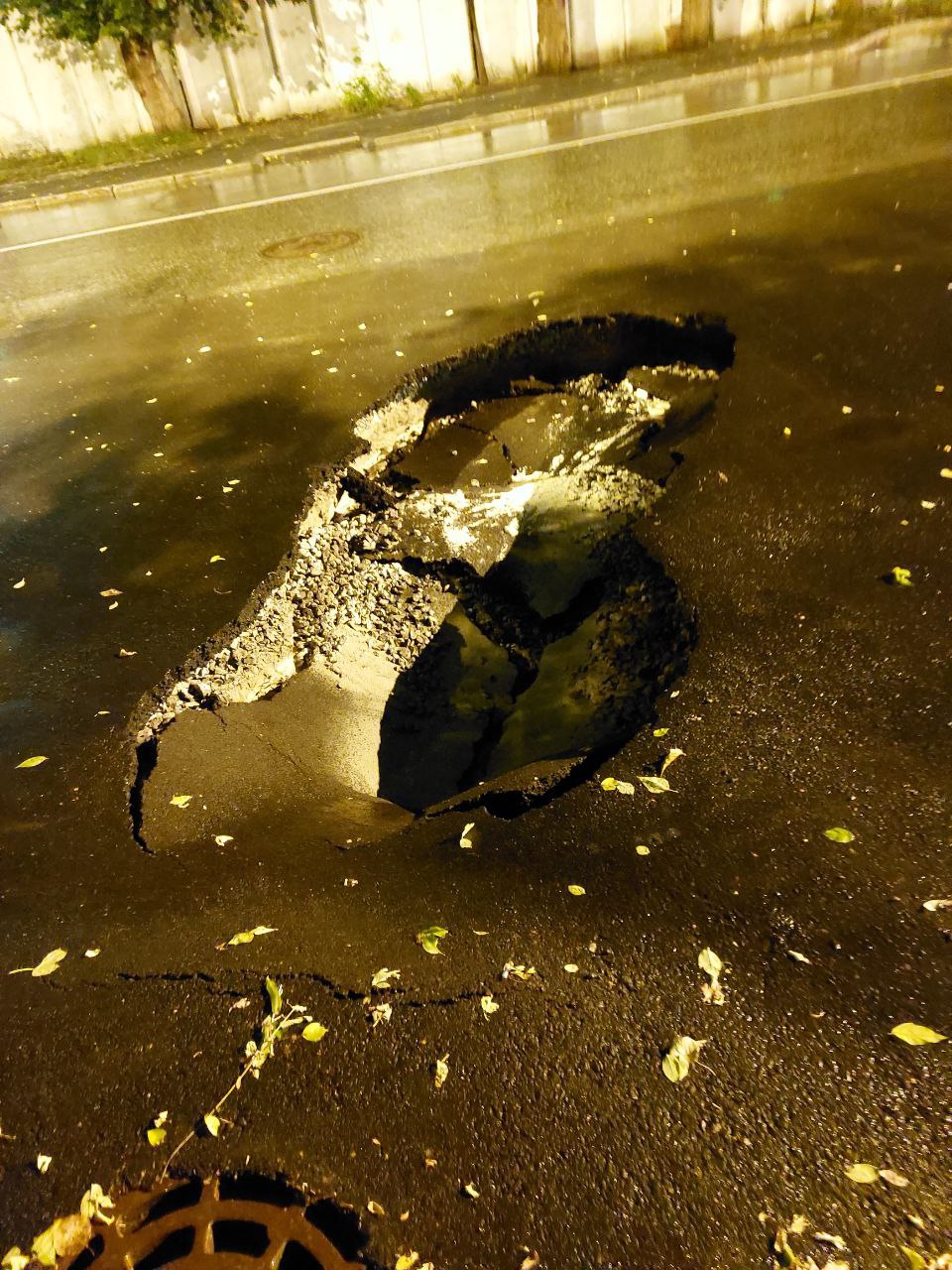 На улице Энергетиков,30 провалился асфальт… “Внимание, водители, на стороне пивных, на парковку заворачивайте аккуратно. Результат некачественного ремонта труб, – советует автор этого фото.