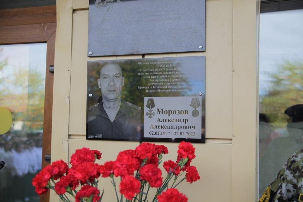 Торжественная церемония открытия мемориальной доски Александру Морозову, нашему земляку, героически погибшему при исполнении воинского долга, прошла на территории первой городской школы. Александр Морозов был выпускником учебного заведения, где сегодня установили мемориальную доску.