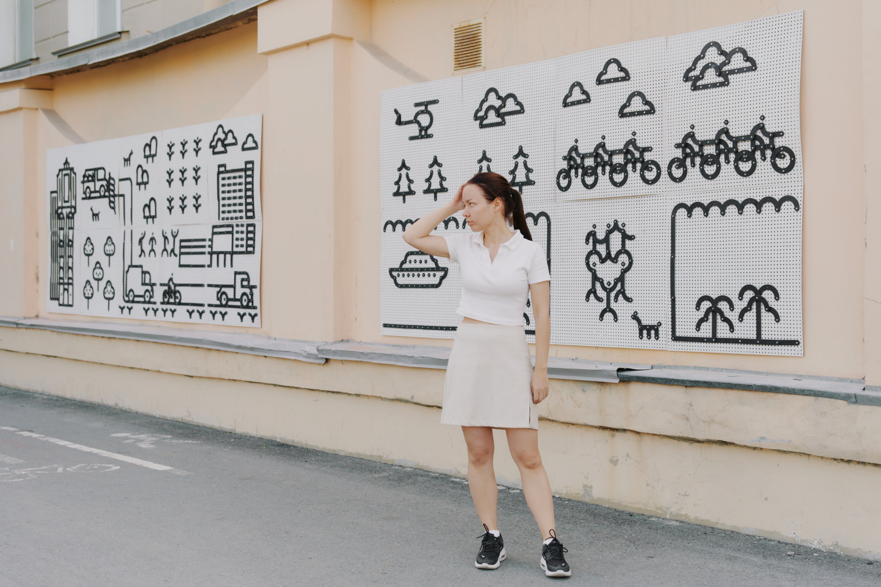 Виктория Нурисламова из Москвы вместе с жителями создала многочастное панно из деревянных модулей про локальную идентичность Тюмени. Готовая работа «Модульная ведута» находится на Ямской, 2 рядом со Строительным институтом ТИУ.
