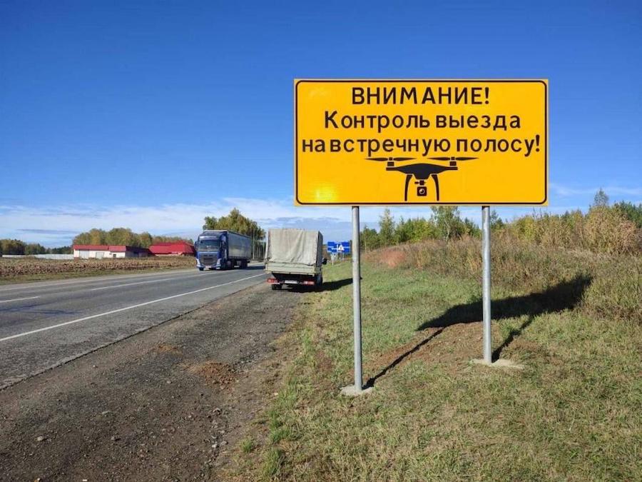 Дорожные знаки, которые предупреждают водителей о контроле выезда на встречную полосу с квадрокоптера, установили на тюменских федеральных трассах.