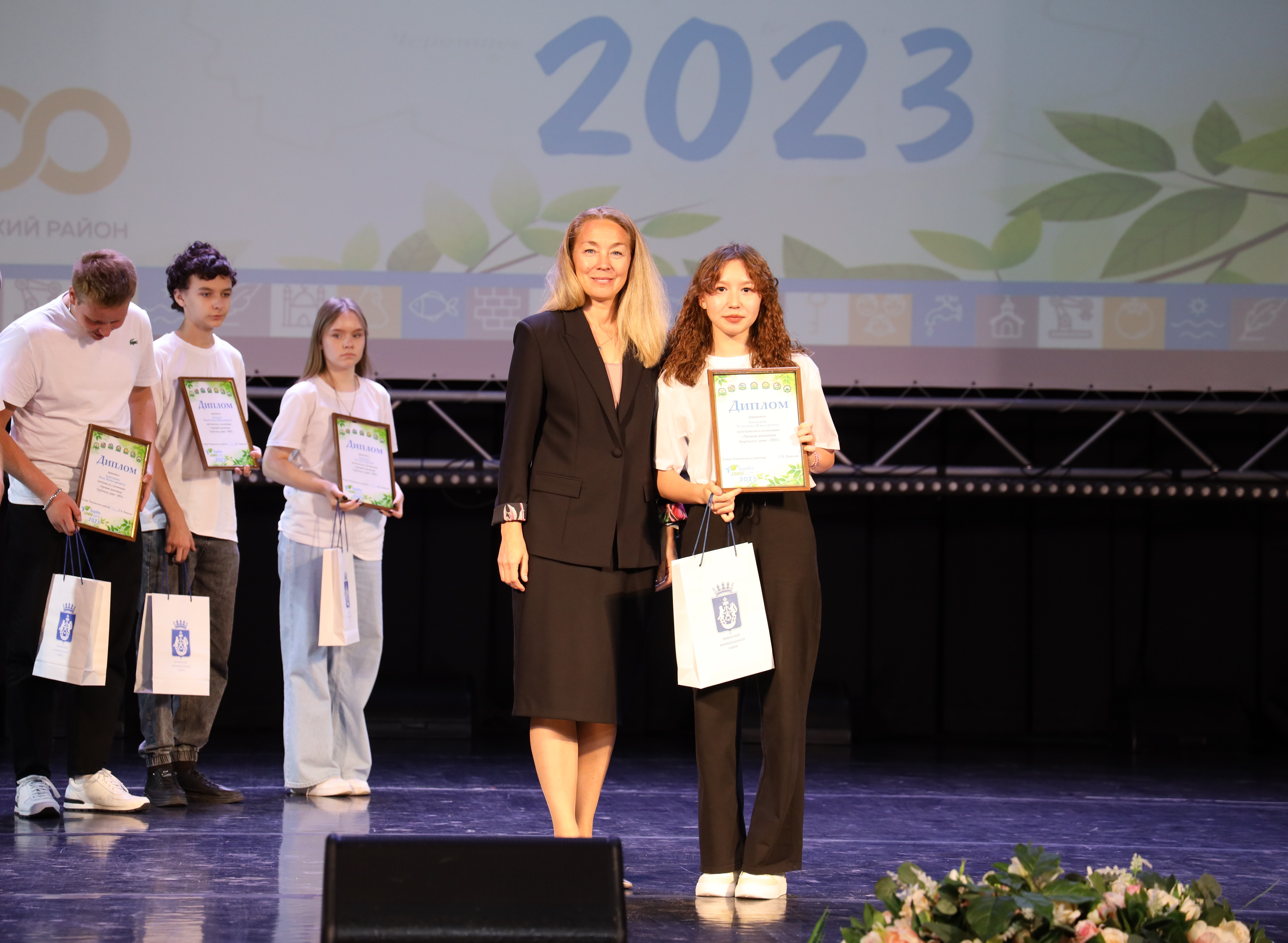 За три месяца каникул в муниципальных образованиях района трудоустроили почти три тысячи детей и подростков. Сто лучших из них приехали на церемонию закрытия «Трудового лета-2023», организованную управлением по спорту и молодёжной политике Тюменского района.