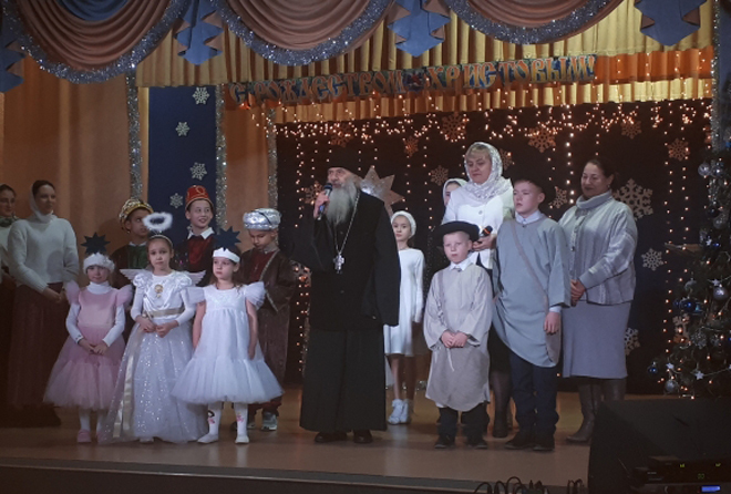 В завершение мероприятия протоиерей Георгий поблагодарил детей за участие в этом сказочном Рождественском празднике и вручил им сладкие подарки.