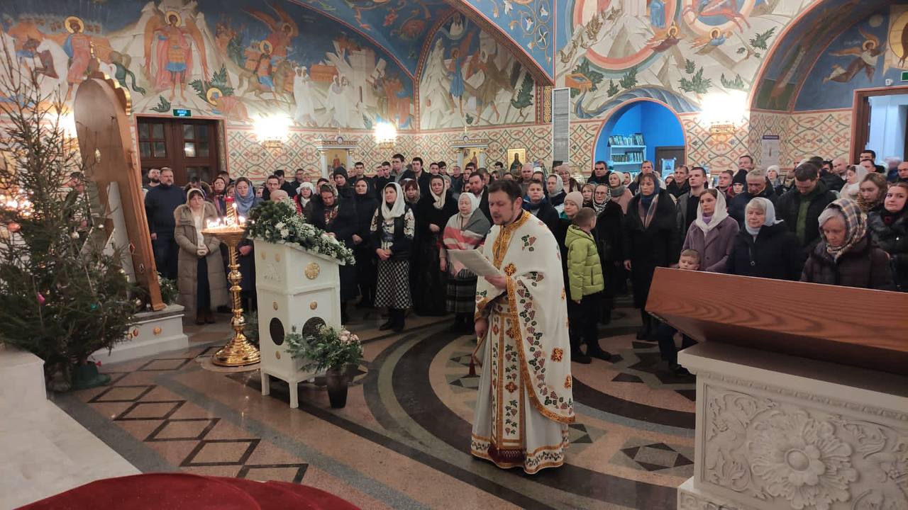 Протоиерей Максим Беликов зачитал прихожанам рождественские послания Святейшего Патриарха Московского и всея Руси Кирилла, епископа Балашихинского и Орехово-Зуевского Николая и обратился к присутствующим с праздничной проповедью.