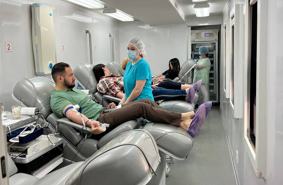 – По инициативе председателя комиссии по здравоохранению и социальной реабилитации Общественной палаты Тюменской области Джинны Лебедевой откликнулись неравнодушные люди – пришли к зданию на улице Советской и сдали кровь в мобильной станции, – рассказал на заседании совета председатель Общественной палаты Тюменской области Геннадий Чеботарев. – Эта кровь необходима и для проведения операций участникам СВО в Тюмени.