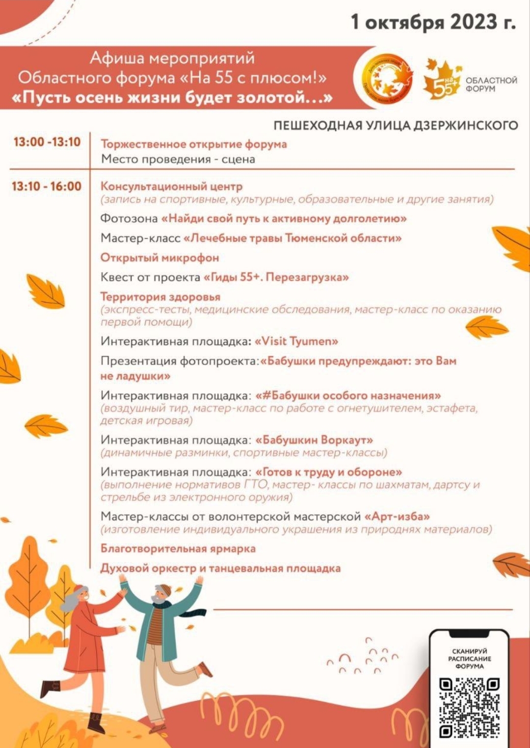 Областной форум "На 55 с плюсом!" состоится в Тюмени 1 октября. Главное мероприятие пройдет с 13 до 16 часов на ул. Дзержинского.
