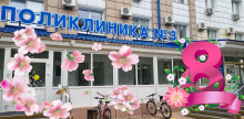 График работы поликлиники №3 в предстоящий выходной день, посвященный празднованию Международного женского дня.
