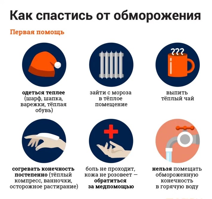 - как только на прогулке вы почувствовали переохлаждение или замерзание конечностей, необходимо как можно скорее зайти в любое теплое место: магазин, кафе, подъезд – для согревания и осмотра потенциально уязвимых для обморожения мест;