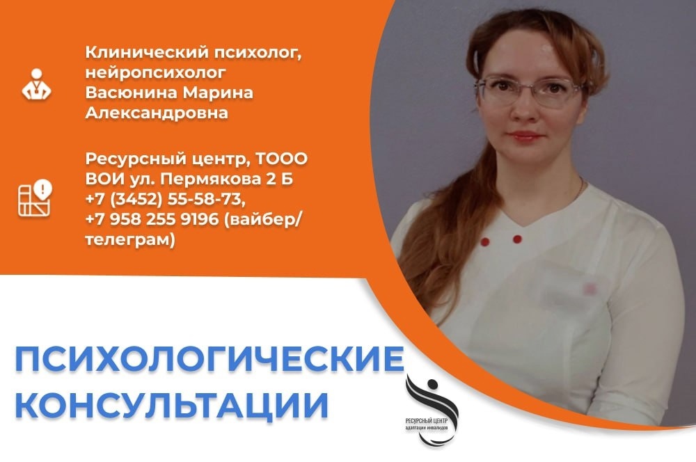 В 2024 году Ресурсный центр адаптации инвалидов, работающий при Тюменской областной организации ВОИ, оказывает психологическую помощь гражданам с инвалидностью, членам их семей,