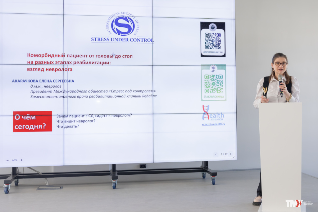 О функции врача-невролога при работе с коморбидными пациентами, страдающими диабетом, рассказала Елена Сергеевна Акарачкова , президент международного общества «Стресс под контролем», (г. Москва).