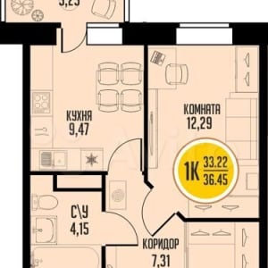 Знаменский, ГП-5, Секция 1, Этаж:7, 33.22 кв.м., № на этаже 6, Квартира №83