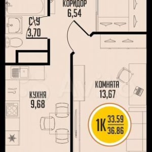 Знаменский, ГП-5, Секция 1, Этаж: 7, 33.59 м², № на этаже: 13, № квартиры: 90.