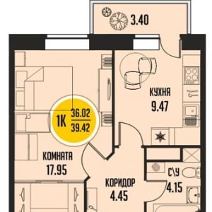 Знаменский, ГП-7, , Этаж:19, 36.02 кв.м., № на этаже 7, Квартира №258