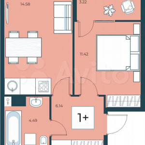 Однокомнатная квартира формата «плюс» с просторной кухней-гостиной. В спальне есть выход на теплую лоджию, где вы сможете выделить зону для занятия работой или хобби, имеется ниша для шкафа-купе. Большая ванная комната, в которой поместится все необходимое. В коридоре выделена ниша для шкафа-купе.