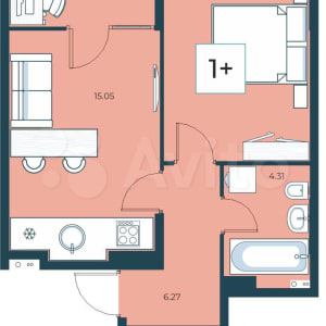 Однокомнатная квартира формата «плюс». Увеличенная кухня-гостиная с выходом на теплую лоджию, где вы сможете выделить зону для занятия работой или хобби. В коридоре выделена ниша для шкафа-купе, санузел совмещенный.
