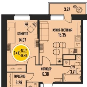 Продается 1-я квартира "плюс", кухня гостиная и спальня.Квартира с черновой отделкой.